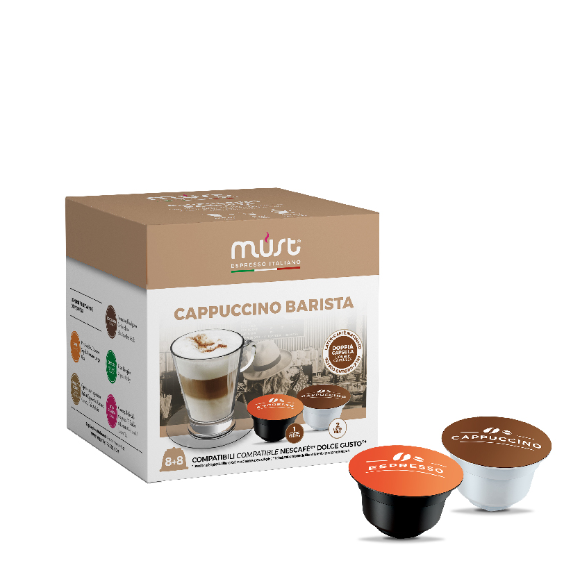 El desayuno italiano favorito, servido con dos cápsulas: café molido y leche. Una nube de leche dulce y cremosa que se funde con una mezcla de granos de café cuidadosamente seleccionados.