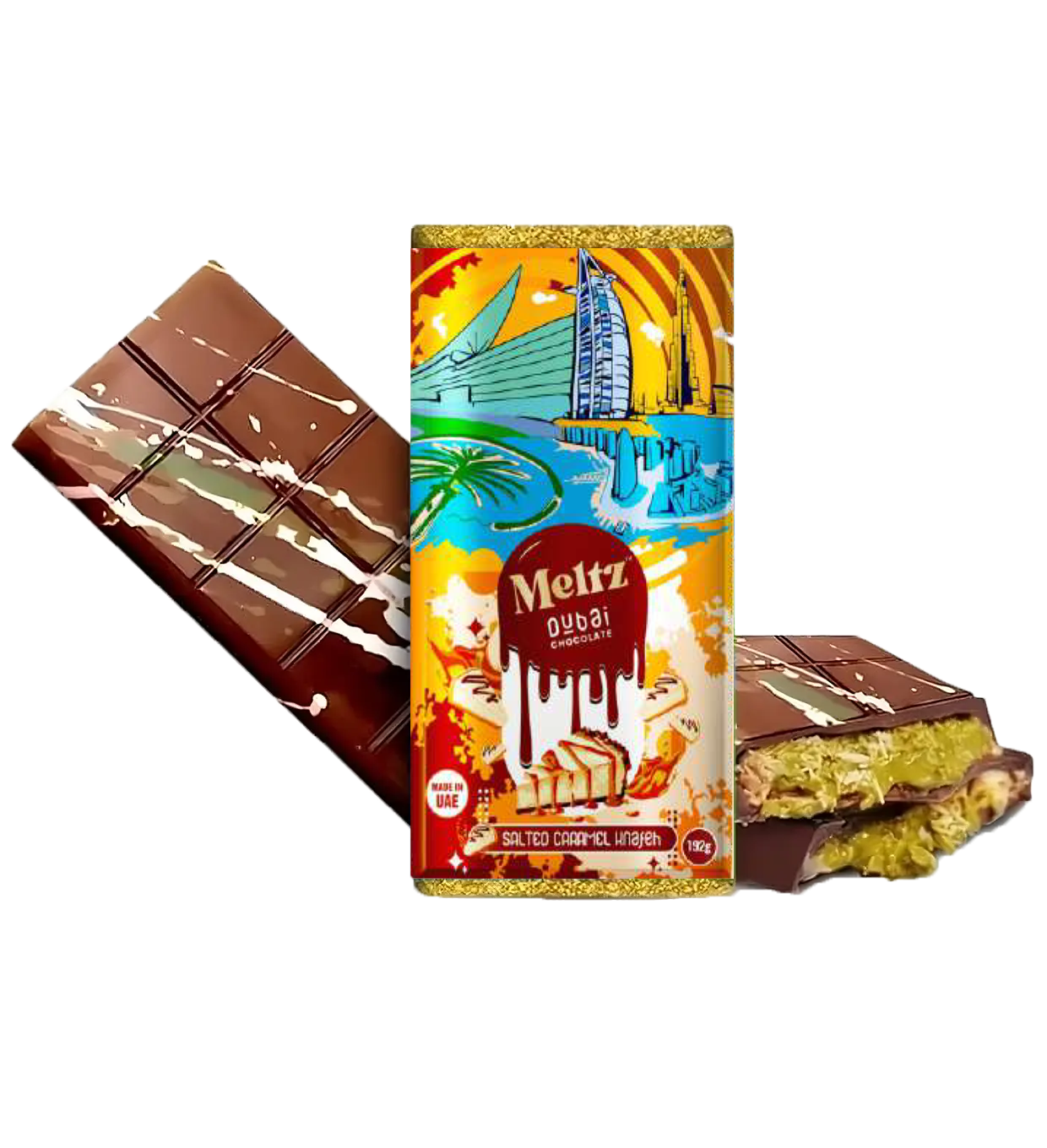 Dejate tentar por Meltz Dubai Chocolate, donde la artesanía del chocolate europeo se une con la exquisitez del Medio Oriente.