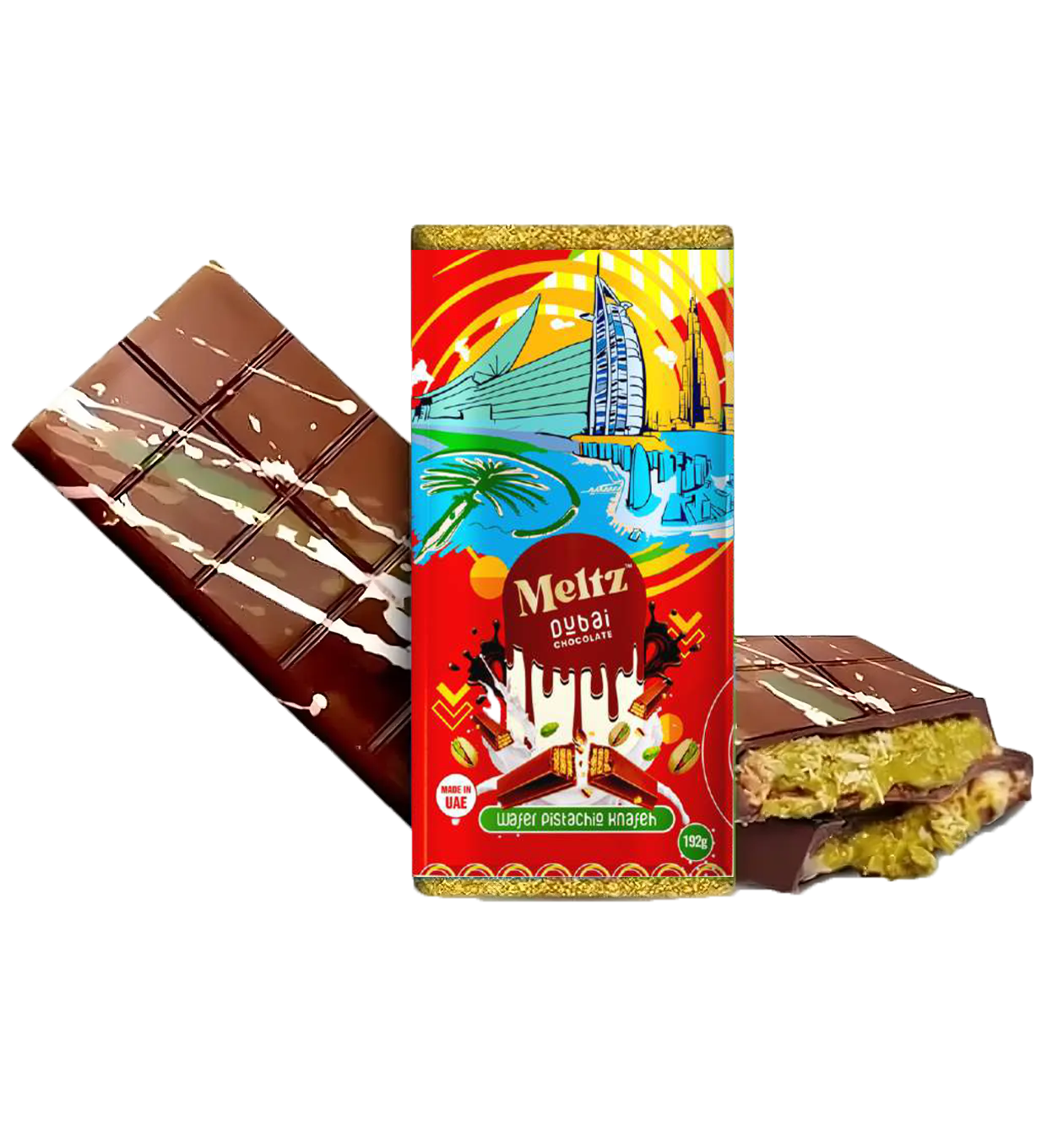 Dejate tentar por Meltz Dubai Chocolate, donde la artesanía del chocolate europeo se une con la exquisitez del Medio Oriente.